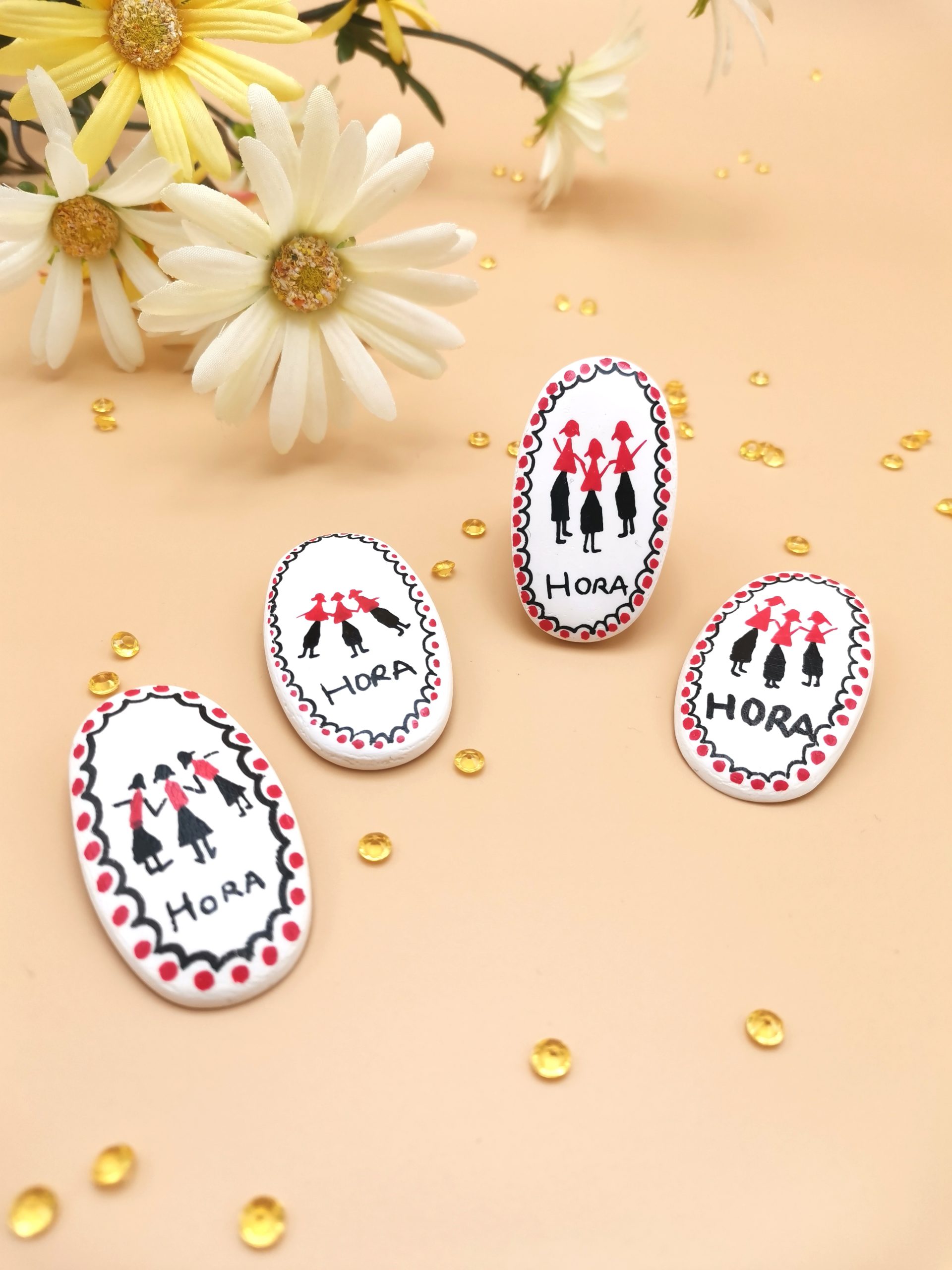 Brosa model HORA desenata in culori acrilice pe o baza din portelan rece.